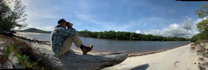 The renowned Chilli Beach was an easy 15 minute drive away. We made a number of enjoyable visits including one where we walked the full 12km (or 10 km depending on where the info comes from) to the Chilli Creek and back, the creek the beach takes it name. With rest breaks, & photo stops & a mini picnic of water & fruit cake at the creek it took us around 5 hours, with softer sand over the couple of kilometres before the creek slowing us somewhat. With neither of us having walked any great distances for a while it felt like an achievement, both of us tired but satisfied to find we could still manage it. Finding an intact nautilus shell amongst other bits & pieces gave added value. We visited a number of times at various times of the day & night to find & photograph the Palm Cockatoos who live there & in the hope of seeing one of hard to find Green Tree Pythons. We found the ‘Palmies’, but lucked out on the pythons. It remains our favourite beach anywhere to date & was thus a great spot to meet up with Josh & Jem a couple of times on their days off.