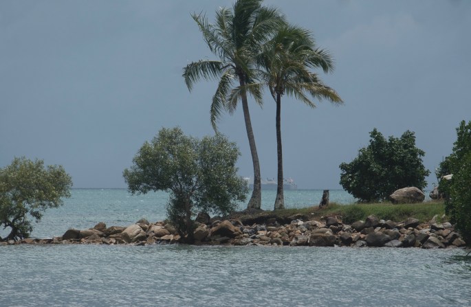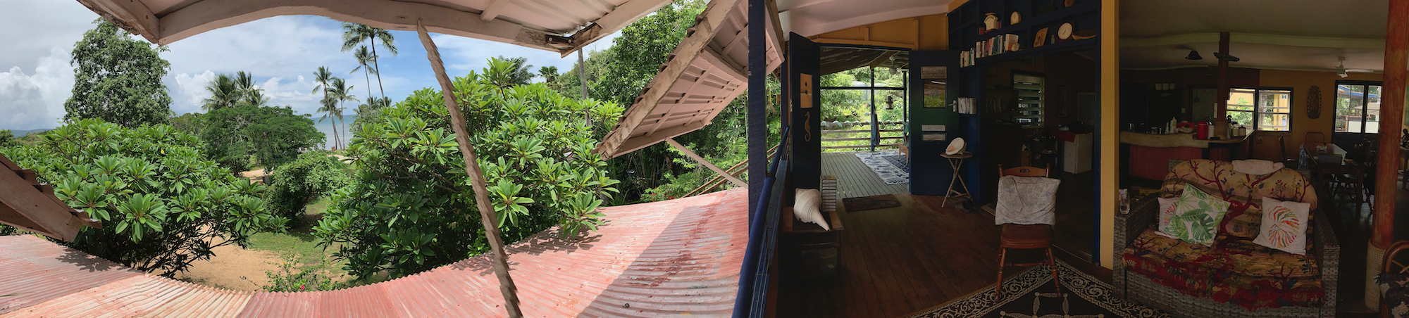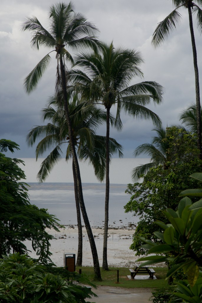 As I sit here writing this, in the semi dark of mid afternoon, with the storm shutters closed in the non glassed window spaces, the heavy monsoonal rainfall & gusty winds creating havoc among the palm trees outside, and the calm smooth coral sea of this morning now being whipped into a whitecap frenzy just across the road I am grinning ….. from ear to ear. We are back at Portland Roads, back to tropical paradise, back to familiarity. It all seems to have been so much easier second time around. I guess it always does, but it’s been a long time since we returned anywhere. It’s a good feeling.
