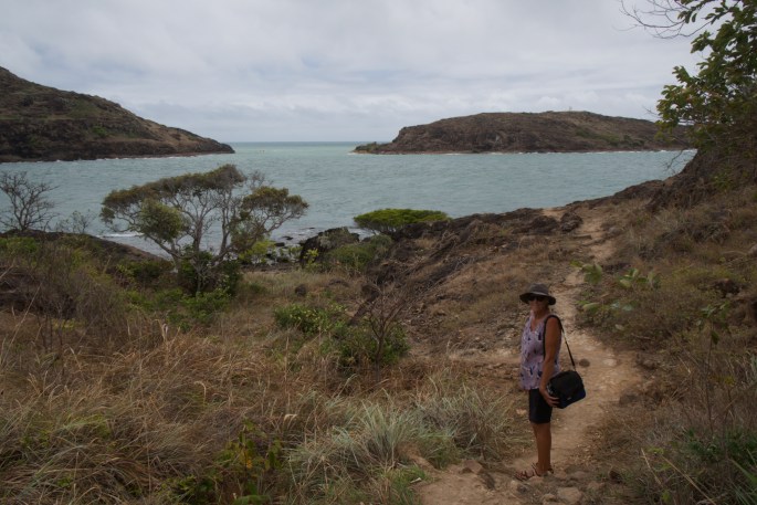 So, from Roonga Point we drove out to the Somerset area on the north east coast, once a place said to have been inhabited by head hunters & cannibals, & ‘tamed’ by an unsavoury white character Frank Jardine, who ruled by might & whom , like in many parts of Australia & indeed other colonised countries around the world continue to be lauded as some sort of pioneering heroes. It is not hard to imagine that those at the receiving end of his violence & and disrespect of black folk felt quite differently about him. Folk recall that Somerset was once intended to become the administrative capital of Cape York. Many stories abound & the Jardine family graves even today remain on site to be visited. Sometimes I feel that Australians ‘hold onto’ & revere such history in order to have a history in what is a relatively young country when perceived only through white fella eyes. Naive at one level, & deliberate denial of a much older history at another. In my view we should never forget the history of the Jardines & their like, but more for how & what they destroyed rather than for what they achieved. Our ‘reverence’ was limited to having lunch in the shade of one of the old property’s mango trees where little more than the surrounding bush, a couple of white painted cast iron cannon barrels & a cross remain, alongside a couple of graves & a sun wearied sign warning visitors not to take mangos away – a remnant of a past infestation by the ‘Red -Banded Caterpillar’ which had represented a dire threat to the country’s mango industry if it had escaped from this remote location & found it’s way south.