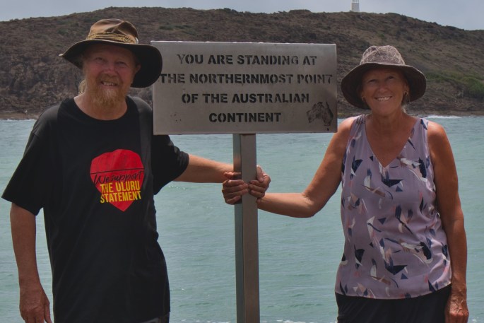 And so it was back to Bamaga via the ‘main’ road & on to Loyalty Beach Campground. Social media had been full of stories about young thieving locals on horseback running amuck at Loyalty Beach, but Katrin assured us the place was fine & she was right. We experienced no sense of threat ,not even a need to keep the constant watchful eye on our belongings that some had advised. It was a pleasant relaxing place to be & to watch the sunsets over the offshore islands. Katrin & her partner Mark who has operated a local car rescue & repair service were a good couple whom we share a sunset & a meal with whilst learning more about life in the NPA. Mark is the chap behind all the emergency towing signs down on the Old Telegraph track, the only recovery service available. Plenty of stories there!