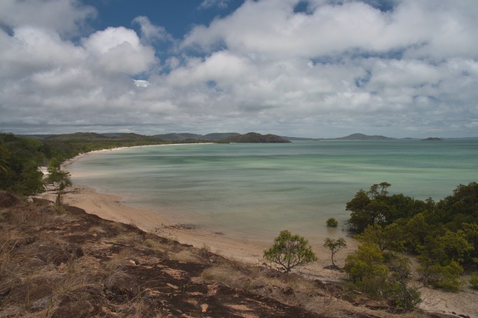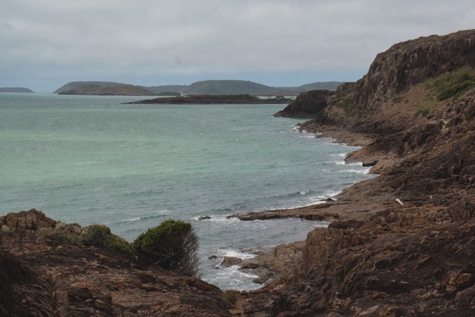 We took the left turn, but we weren’t headed to Punsand Bay. Instead we were looking for a turn off (again unsigned) a few kilometres before Punsand. It would take us to Roonga Point, another free camping area & right on the beach. It was a popular spot with plenty of room for all without becoming crowded. Most people arrived weary at the end of a long day’s driving, & leaving early the following morning. Young families, couples & singles of all ages, some handling the ‘pressure’ of limited time travel impressively well, & some not. Fathers berating young sons, & couples arguing were in the minority, & from our observation often alcohol fuelled. I was reminded of a time at Emily Gap, in the East Macdonnell Ranges out of Alice Springs. Our teenage son & I were travelling on a motorcycle, it was hot & we were both tired & weary. Having got off the bike for the umpteenth time that day to walk, wearing our motorcycle gear, to yet another place I had seen pictures of & had always wanted to visit, our son gave voice to what we both feeling saying he would remain at the bike & wait for me. My frustration at the ‘dream not being how I had always thought it would be’ bounced loudly off the rock walls but directed at him. It was not one of my finer moments. Here at Roonga point I felt for both the fathers & the sons.