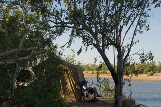 Repacking the car & Tvan had been something we had managed over several days & we were ready to leave early on the Sunday morning. Returning to Langey Crossing, 180kms east of Broome, to camp on the banks of the Fitzroy river for a few days was something we fancied. We loved the place 10 years ago & again last September prior to going up the Peninsula. It would be, as returning to familiar spots often is, an easy way to work ourselves back into camping mode after a 7 month break. Water levels were a little higher than on our last visit, most probably a result of recent high tides which had made it across the sand bars at Telegraph pool a short distance downstream.