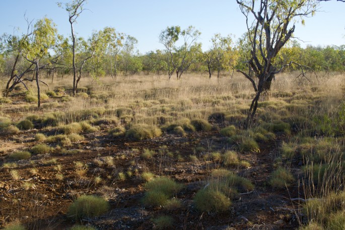 The first 100kms or so out of Derby is sealed Road, after that the only sealed road is across some river beds & on a couple of the steeper inclines through the mountain ranges. Mostly it’s dirt road, dusty, bumpy & unpredictable. We decided to give the popular (well deserved popularity) Windjana Gorge, Tunnel Creek & Bell Gorge a miss as we visited these back in 2010 (http://www.cuppa500.com/Big_Trip/Entries/2009/8/14_Entry_37–Gorges%2C_Boabs%26_Crocs.html). They are stunning places, but we were keen to reach what for us would be ‘virgin ground’. After crossing the King Leopold Ranges we took a northward turn up a track for 50kms to Mt Hart Station. Flags flying at the turn off advertised the campground. ‘The only grassy campsite on the GRR, Bar, Pizza, Fish n Chips, hot showers & free washing machines’ . It wasn’t an awful place, but the reality was a little different to what the flags had promised. Certainly we did have a grassy riverside camp, hot showers which were cold, a washing machine which was at the homestead/dining room/bar a couple of kms from the campground, & fish & chips at $30 per head. The ‘attractions’ were not that special, a small gorge made for a nice walk up the rocky creek bed to a body of clear water, another ‘swimming hole’ held unpleasant murky looking water, with access around what looked like recently bulldozed piles of earth giving a building site-like appearance, a walking trail was through burned out country. A couple camped next to us, Sharon & Peter had come across the Gibb from the east & were close to the end. They spoke what we were thinking , about our disappointment. They said that Mt Hart was their least favourite stopping place. This at least bodes well for us. They also commented that when a place advertises a bar as a primary attraction it probably doesn’t have a lot else going for it! A shame really, as by all accounts it used to be a ‘must visit’ place, back when a character name Taffy Abbots managed it. He loved the place & built it up over 20 years using much of his own finances to do so. He also bred pet dingoes which were a feature of the place as was the man himself. The leaseholders then shafted him, after he had made the place popular, kicking him out in a very public & acrimonious manner & at short notice, seemingly unable to recognise the value that a passionate man like Taffy, who had expected to see his days out there, gave to the place. It seems that they only had profit in their eyes. They have since leased it to a tourist resort company who in our view are missing the point in their approach & who we think likely will only be there in the short term. Sadly in a typed history of Mt Hart, pinned up at the campground ablution block Taffy only warranted a couple of lines within the 3 page document.