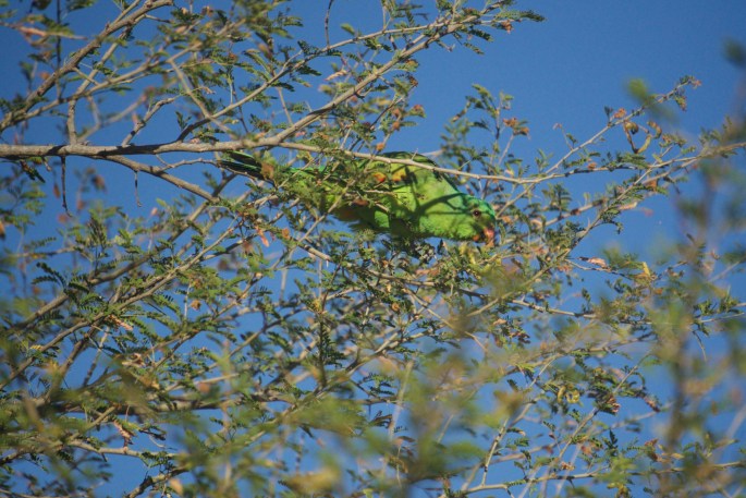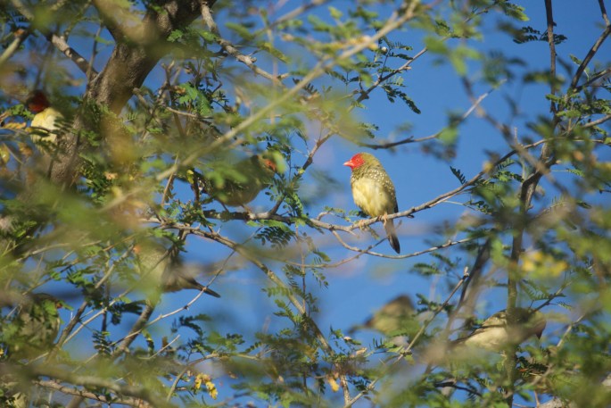 A short distance back from the river in the spinifex & grassland there were many more birds, the finches & other small seed eaters, mostly too small, & too fast to identify, but flocks of Peaceful Doves & the always neat Double Barred Finches were common. Less common & for us exciting to see one morning was a flock of Star Finches at close quarters to our camp. Much of our time there it was unpleasantly windy, which of course also means dusty, so the camera got very little use. I did make an exception for the Star Finches though